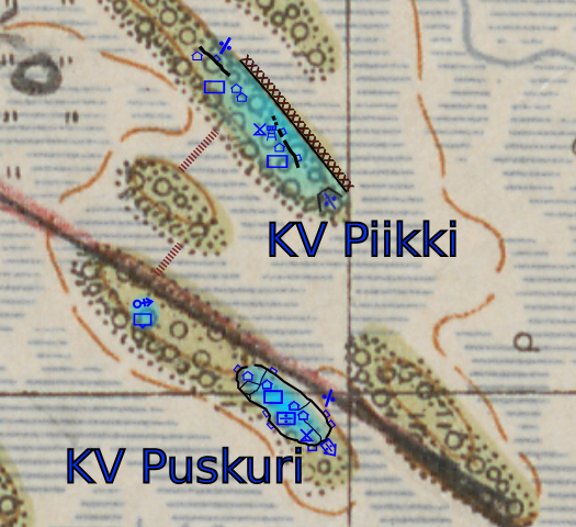 - 19:00 Oli miehitys vaihdettu ja entinen osasto lähti marssille Vansjärvelle. KK-komppanian sijoitus Vilkojärven lohkolla: